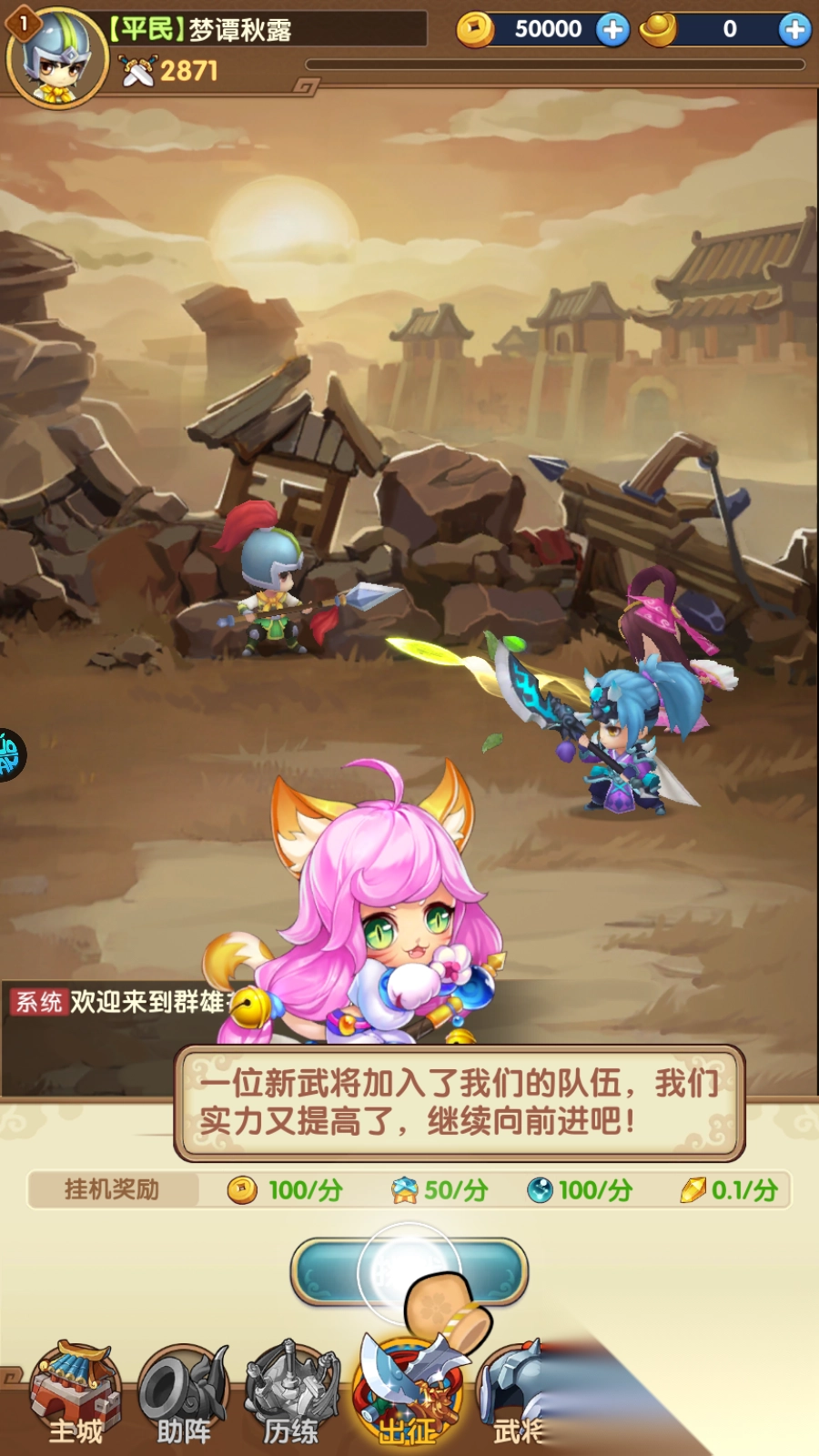2、Q版三国画风:可爱的Q版角色设计,融合经典三国元素,为玩家带来全新的视觉享受。