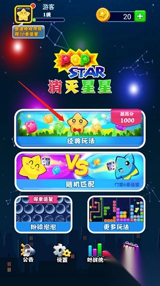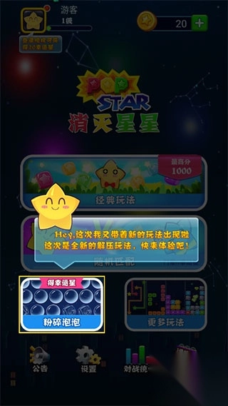 6、消灭星星官方正版还提供了粉碎泡泡等多种游戏玩法可供选择;