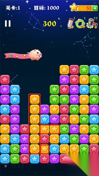 5、星星连萌还有更多玩法,只要纵向或横向的星星排满,就能消除并得分。