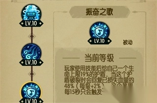 三技能:使用技能获得乐师蛙给你的一个护盾,护盾破了回已损失血的48%,近一半。这个每15秒触发一次是指的单次战斗间隔,不同的怪不需要间隔。