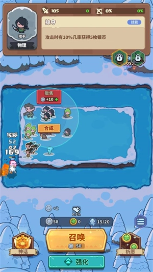 3.当前游戏中还加入了合成的模式,三个相同的角色就可以合成更高级的英雄,变得更加的强大;