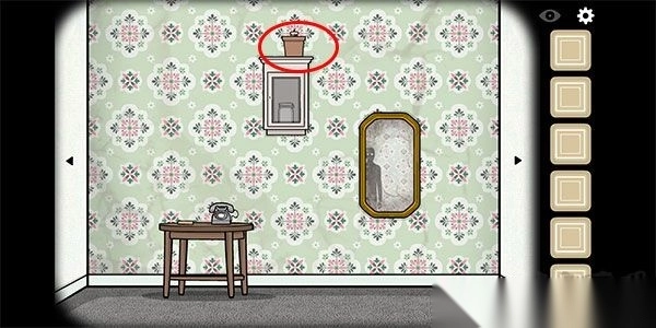 1、在房间角落的花盆中,找到并拿到第一个蜡烛,作为初始道具;