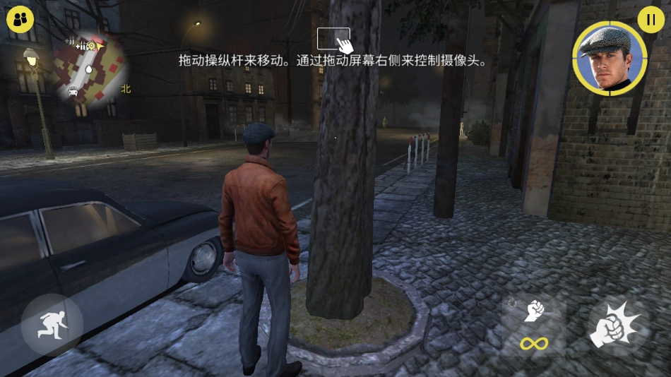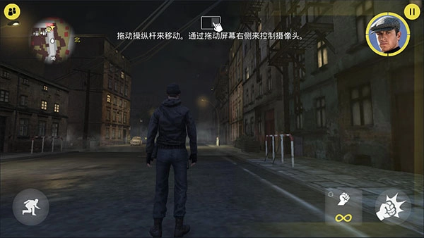 3、然后我们可以拖动操纵杆来移动角色,并可以通过拖动屏幕右侧来控制摄像头的视角方向。