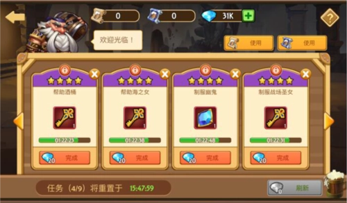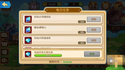 日常任务能够获得游戏内主要的消耗品:钻石、斗技场门票以及许愿水晶。并且完成所有任务后会有200钻石的奖励,可以说是每天必做,下面就为大家介绍一下游戏中的日常任务。