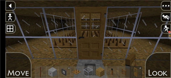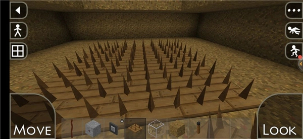 7、这便是制作完成后的陷阱,在家门口设置一个,然后连接到屋内。白天的时候,丢些肉来引诱狼进入,等到月圆之夜狼变成狼人后,按下按钮,刺钉就会冒出来,如此一来,刷钻石简直轻松无比。