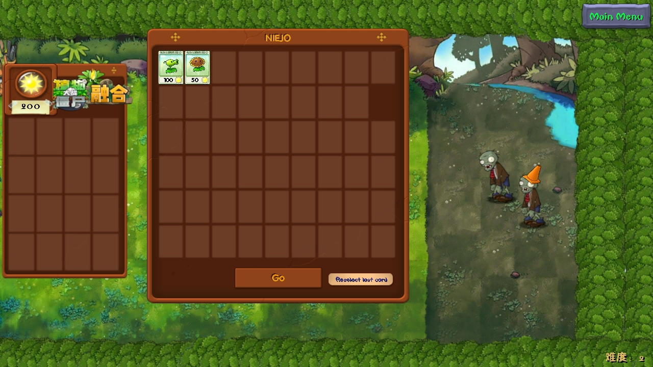 3、我们需要将初始的豌豆射手、向日葵进行添加操作,点击GO,完成添加。