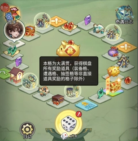 5、若行进至“大满贯”格子,能够获得当前棋盘中除装备类道具之外的所有道具奖励。