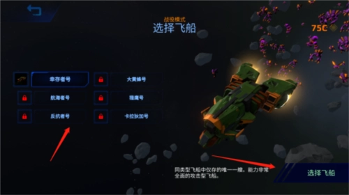 3、切换至自己想使用的飞船,点击选择飞船予以确认。