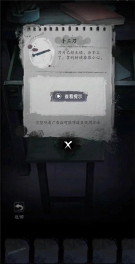 在剧情结束后,于门口信箱处可获取【明信片】 。在柜子上能找到【铁锅】,柜子下方的密码锁对应4个图案,这些图案分别可在柜子上、土地爷处、积木处以及宣传栏处找到。在宣传栏处可得到【大门照片】,由此得知密码为【4360】,同时还能获得【厨房照片】与【旧钥匙】。在门上可拿到【八卦镜】,接着用钥匙打开最左边的门,经过探索可获得【丝瓜瓤】【煤钳】【筷子】【火柴盒】【玻璃瓶】【黄符】 。