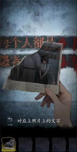 19、随后返回房间,来到储物柜前将其打开,借助金属条把柜子开启,从中取出半张残缺的照片。照片上呈现出过道墙上残留的字迹。
