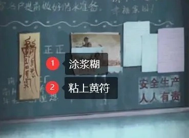 接下来,依据线索所在位置放置物品。在门口摆放八卦镜,用浆糊将黄符粘贴在宣传栏上。之后回到那扇锁住的门处,在门的下方使用钳子获取【钥匙串】。接着,用钥匙串打开走廊尽头的门,在桌上找到【合照】。最后,依照图中的顺序点击五角星开启机关【左右左下中右下上】,从而得到【录像带】。