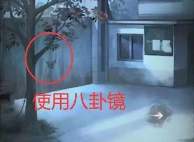 5、再度点击煤气炉,接着往炉上容器里倒水,随后点火,再放入面粉,拿筷子去粘取形成的浆糊。之后来到院子里,将八卦镜挂到最下方的那根树枝上,紧接着打开宣传栏,把浆糊放置在宣传栏的最左侧位置,然后贴上黄符。再点击大门下方,使用煤钳夹取到钥匙串,返回楼上,用这串钥匙打开最右边的房门。