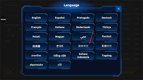 3、挑选“简体中文”,确认完毕后重新启动游戏就行。