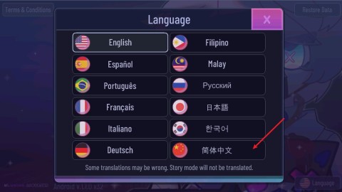 1. 进入游戏前,请点击主界面右下角的“language”按钮。