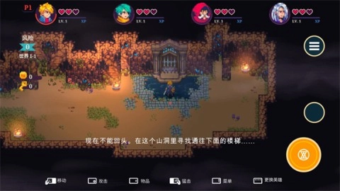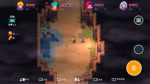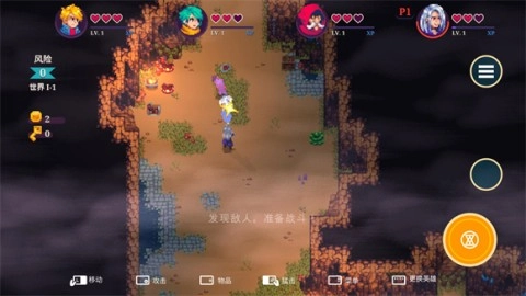 5、一切准备妥当,那就正式开启冒险之旅!屏幕左边用来操控角色移动,右边的黄色按钮是攻击按键,放手去战斗吧!