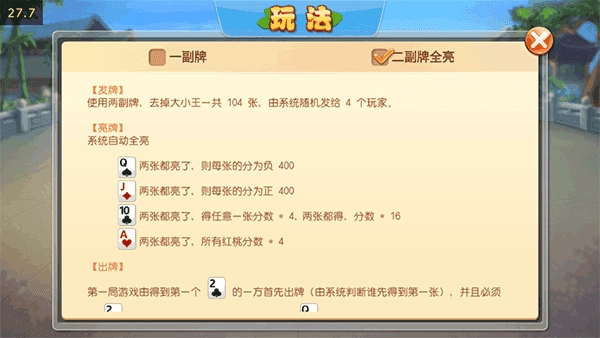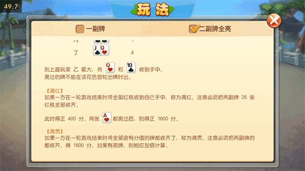 结束标识:当所有分牌全部出完时,游戏即宣告结束。