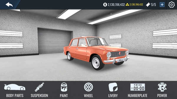 4、点击车库,在此处能够为自己的汽车升级配件,从而让它的速度变得更快。