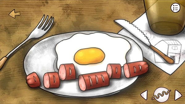 再次点击餐桌,就能获取带有锯子的小刀以及密码111312 。(这里的香肠被切成了6块,每一块上面的刮痕都代表着一个数字 )