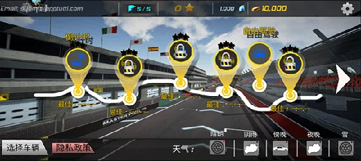3、丰富的赛道和车辆选择;