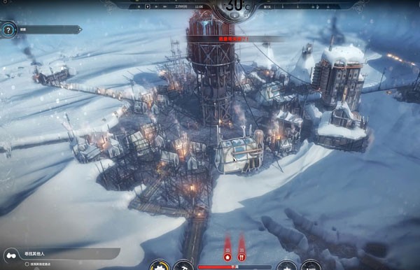 请注意锤子图标旁箭头所指的道路图标,在雪地里修建道路能够使工人更迅速地抵达工作地点。