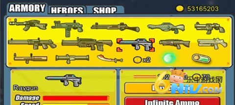 2、购入生命和能量球后,接着挑选强大的激光枪(此武器在前几关效果显著),随后购买能束缚敌人的武器。