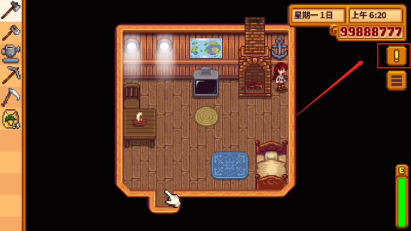 7、走出房间后可以在附近开始开荒,左侧是工具栏