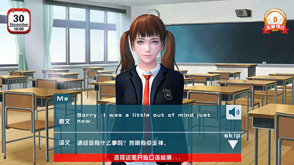 5、若尝试失败达5次,便会解锁跳过功能,只需点击skip按钮,就能跳过录音环节。即便关卡得分扣减至零,也不会致使游戏失败,玩家可安心游戏。