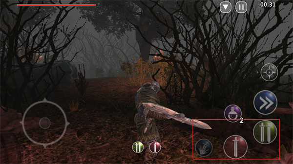 如下图,玩家可以点击选框中的三个按钮进行攻击;