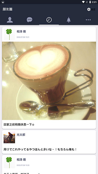 切换到朋友圈界面可以查看好友发布的各项动态。