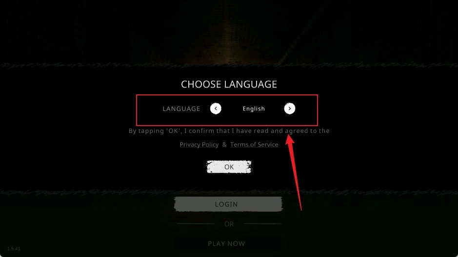 首次进入游戏,映入眼帘的是默认的英文界面,具体可参考下图。若要切换语言,只需点击【English】右边的按钮即可。