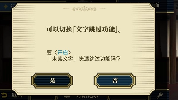 接下来进入推理阶段,在这里我们能够点击设置选项,对文字跳过功能进行调整。