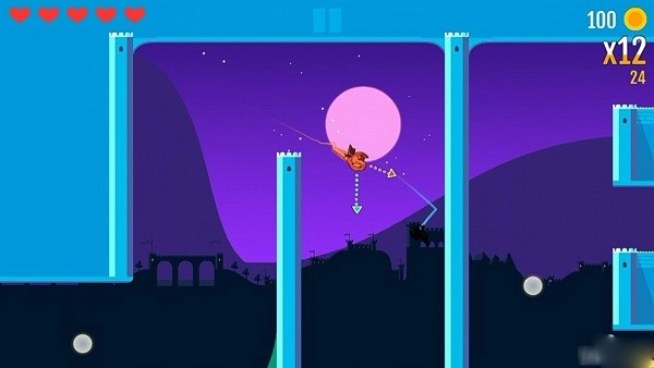 你可以按住屏幕的一侧,同时用两个手指按住屏幕上的两个白点来操作另一侧屏幕。当你松开左边屏幕但不放开右边屏幕时,角色会以慢镜头状态朝着你调整的方向飞行。只要不松开右边屏幕,就能重复进行这个操作。