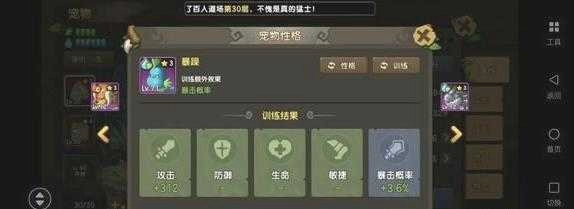关于宠物性格训练,我的个人建议是要么干脆不训练,要么就直接把属性全洗成橙色——不然到了后期还得重新洗,太麻烦了。要知道,洗出一个合适的橙色属性,平均得花50万石币呢,这钱可不少,大家一定要谨慎操作!如果不是打算重点培养的宠物,那其实没必要特意去训练,或者用蓝色、紫色属性凑合用用就好。