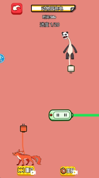 在动物园充电关卡里,玩家只要把动物身上的插头顺利插到插排上,就能完成闯关。