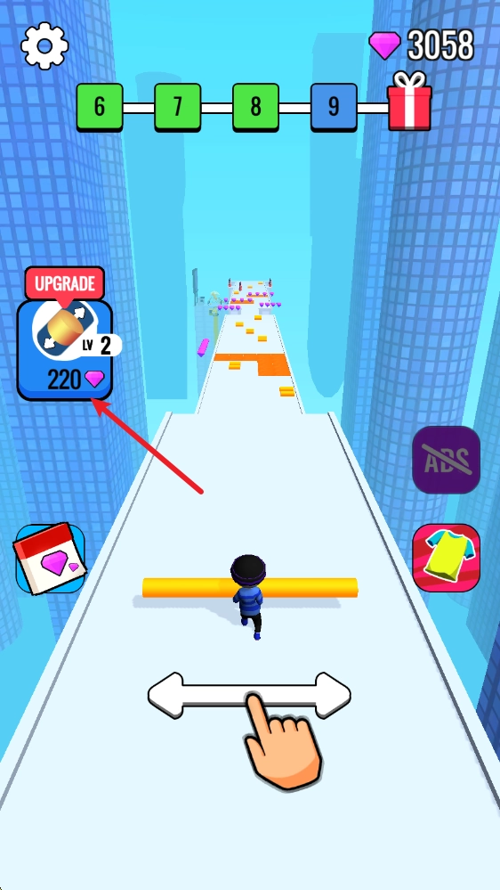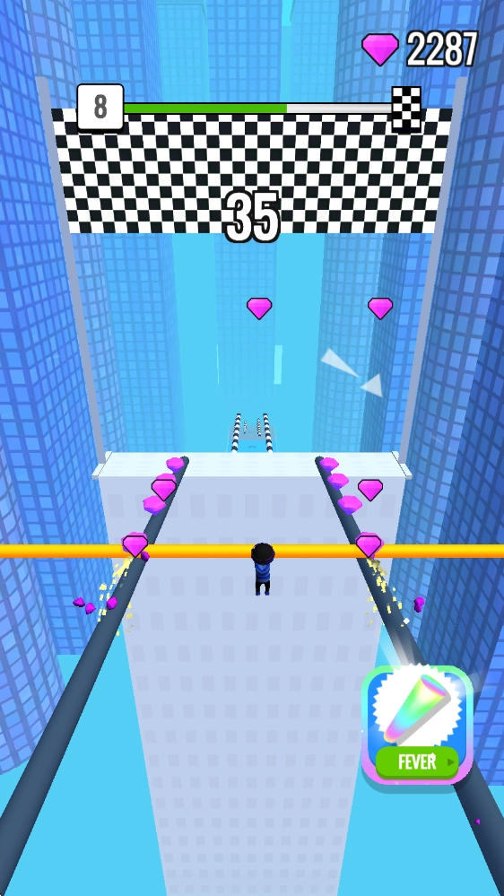1、收集更多钻石来提升自身能力,这样你就能在关卡里跑得更快更远,手中的棍子也能持续变长。