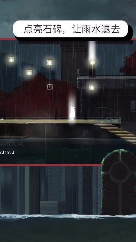 《雨纪》是一款十分有趣且充满美感的休闲解谜游戏。在游戏里,你能体验到兼具唯美音乐与解谜元素的独特玩法——精致细腻的手绘画面搭配宁静悠扬的雨声,带来独一无二的沉浸感,让你收获前所未有的游戏体验。你将化身为一位神秘女孩,在这座被雨水淹没的城市中,用手中的光芒点亮各处的灯与石碑,让雨水渐渐退去,拯救这座危在旦夕的城市。