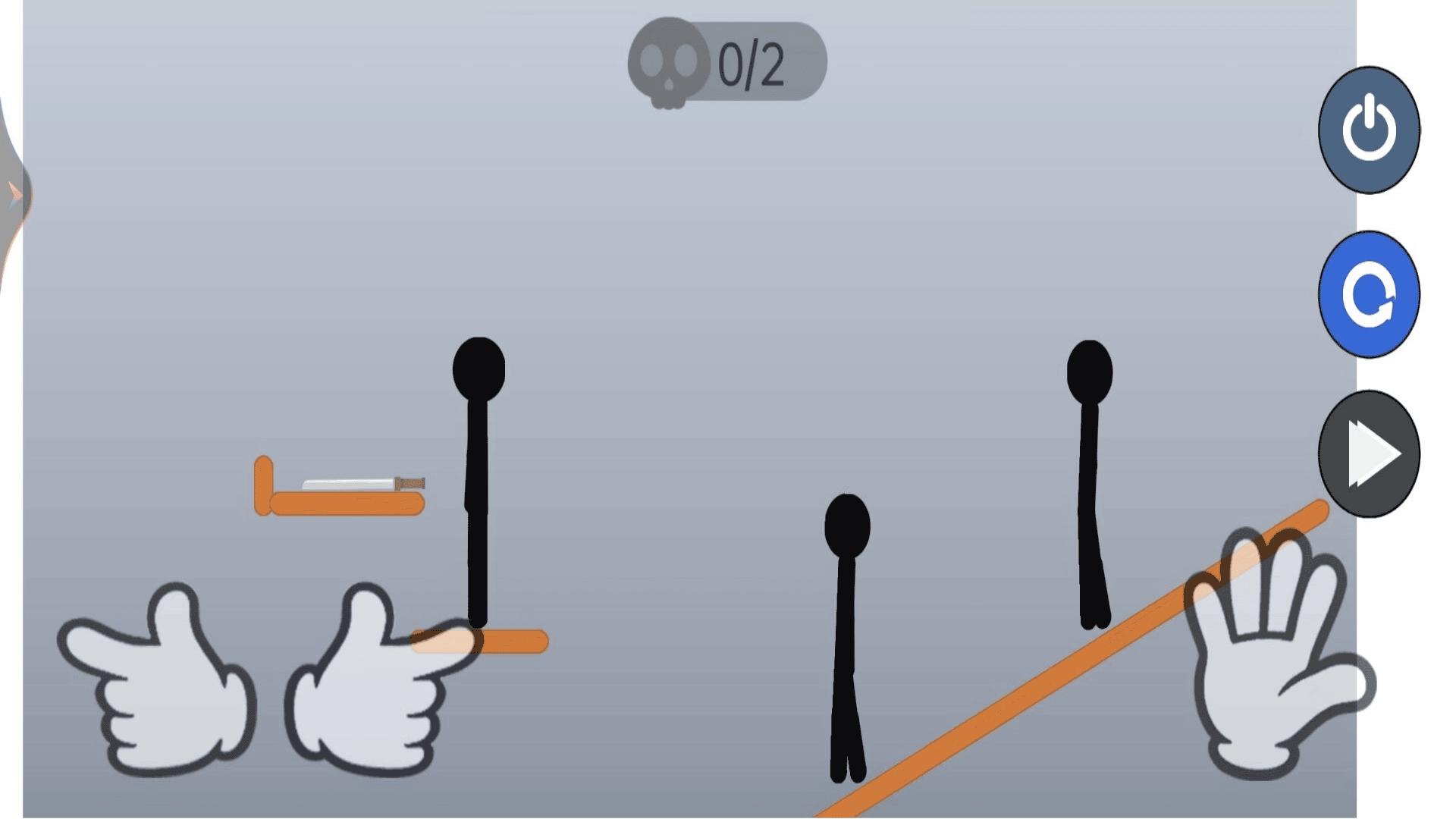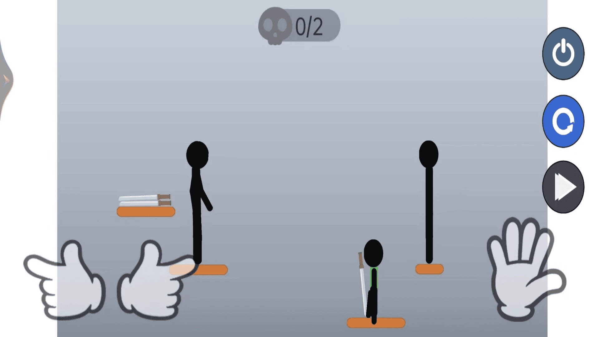 3.如下图所示,进入关卡后点击画面左侧的按钮来控制火柴人的手臂,点击右侧来控制手掌握住武器。