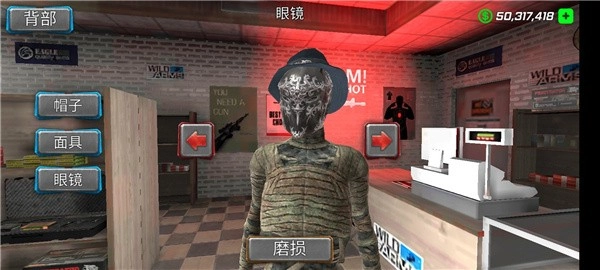 3、在字符选项中,我们还可以选择购买不同的皮肤、帽子、眼镜、面具,并对其的搭配。