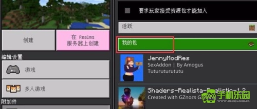 6、然后在左侧找到资源包,然后在点击右侧的“我的包”就可以看到珍妮模组,点击激活。
