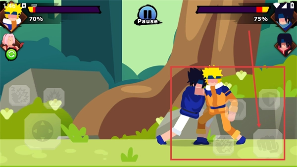 3、操控粉色头发角色释放腿击技能,通过移动按钮调整位置规避反击。