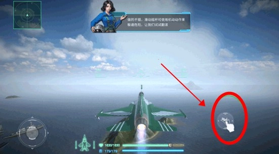 右侧向上箭头可加速,迅速接近目标。