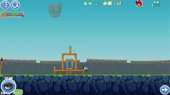 选好小鸟后按住屏幕来选择角度发射,发射后点击屏幕可以使用技能和道具。
