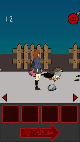 终于来到最后一关了。这关其实挺简单的:等妹子走几步后,用大石头堵住身后痴汉的去路;接着鸟会被惊动往前飞,这时在鸟前方放个小石块让妹子绊倒,鸟就会第二次受惊;同时用猪头挡住追上来的痴汉,这样就能通关啦。