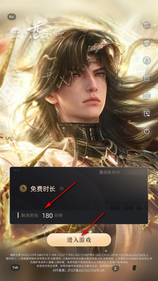 进入游戏前需登录账号,新用户可享有3小时免费时长,之后点击【进入游戏】按钮即可。