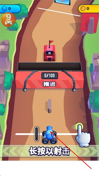 在小车前进时,玩家需依据持续变化的赛道状况,以及突然出现的敌人位置,即时判断射击时机,同时决定是否使用倍数道具。