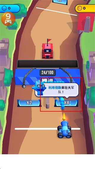 在游戏进行时,会出现带有倍数属性的道具,对这些道具进行射击操作能够让队伍变得更强大。