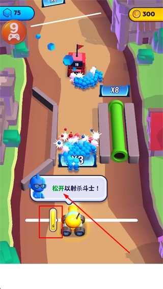 长按射击按钮即可发射炮弹人,还能灵活运用倍数道具,让炮弹人队伍飞速壮大,持续积蓄力量,为战胜敌人做好充分准备。