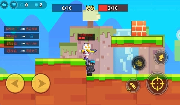 3、游戏操作简单易上手,左侧虚拟按键控制角色左右移动,右侧按键兼具射击与投放炸弹功能。