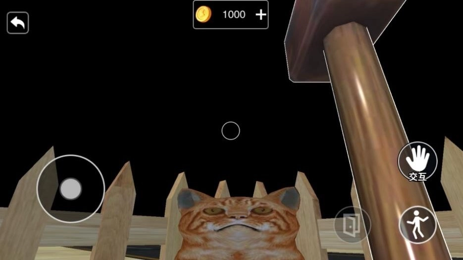 2、寻找躲在角落里的猫咪,点击交互按钮就能和猫咪互动。