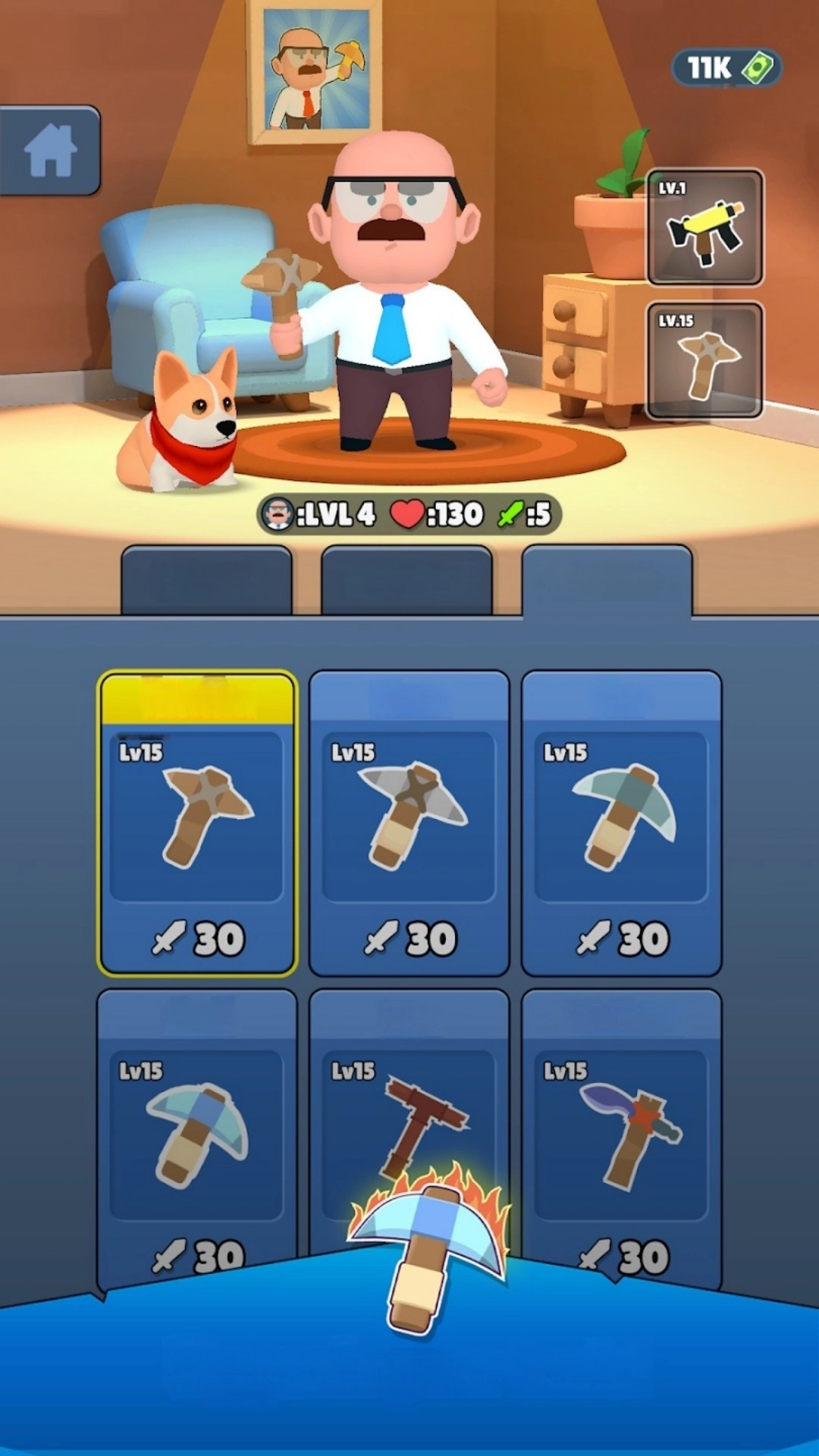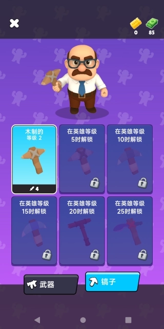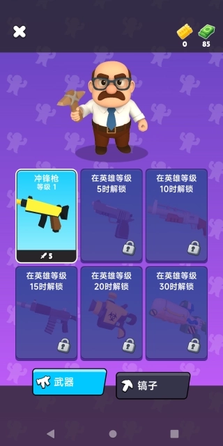 4.点击画面左下角的工具,即可进入武器面板查看武器;提升等级后,还能解锁更多不同类型的武器。